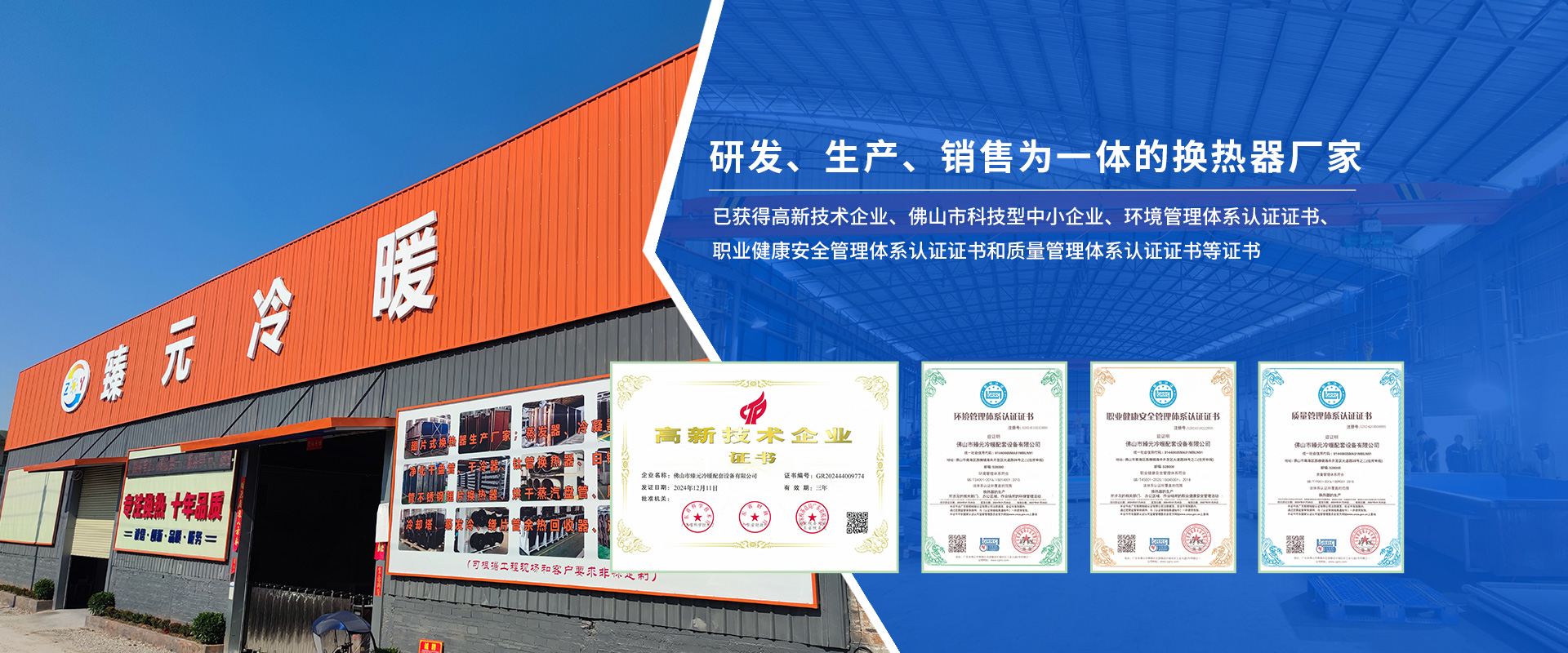 佛山市臻元冷暖配套设备有限公司是一家集研发、设计、生产、销售为一体的换热器厂家,主营产品有:(干式.翅片式.不锈钢管.钛管)蒸发器/冷凝器、表冷器、干盘管、水盘管、不锈钢热交换器。